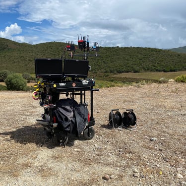 Fournie avec 1 ou 2 supports moniteurs, une vis spigot 16 et une roue de secours, ainsi qu'une housse de pluie.