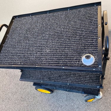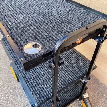 Evolution du R12RT en version roulante BackUp, avec 3 plateaux de 75cm de long par 50 cm de large, de façon à disposer tout le matériel nécessaire aux backup, tout en ayant un faible encombrement et en passant un maximum de portes. Equipé d'une multiprise 5 prises et 2 USB A et d'un passage de câbles sur l'étagère supérieure.